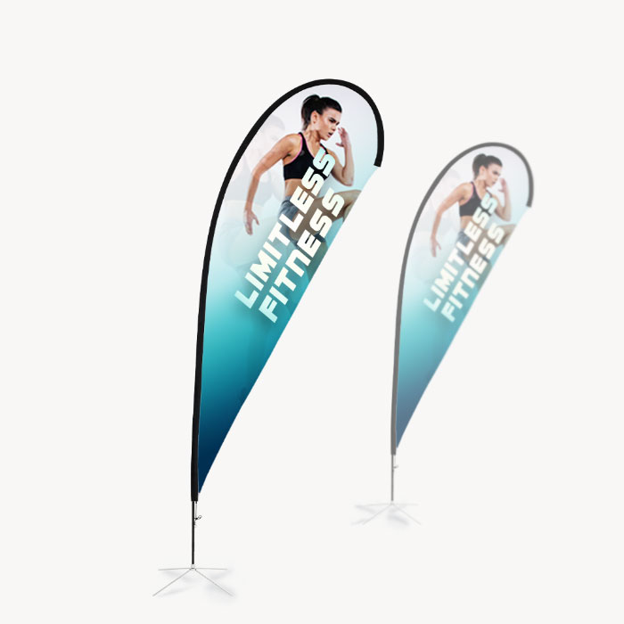 The Teardrop Flag is suitable for indoor and outdoor events. Effectively advertise your logo or message with our x-large teardrop flag. Available hardware options including a heavy duty cross base or ground stake to fit to your pole set.