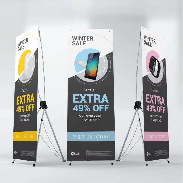 Showcase your promotional banner with the X-stand. It is durable and is the most cost effective display. Stand includes a free travel bag, making it easy to carry to trade show exhibits, lobby exhibits, and much more.